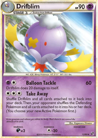 Shuffle Drifblim and all cards attached to it back into your deck. Then, your opponent shuffles the Defending Pokémon and all cards attached to it into his or her deck. (You choose your new Active Pokémon first.)