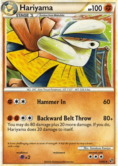 You may do 80 damage plus 20 more damage. If you do, Hariyama does 20 damage to itself.