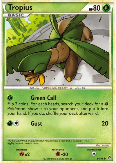 Flip 2 coins. For each heads, search your deck for a Grass Pokémon, show it to your opponent, and put it into your hand. If you do, shuffle your deck afterward.
