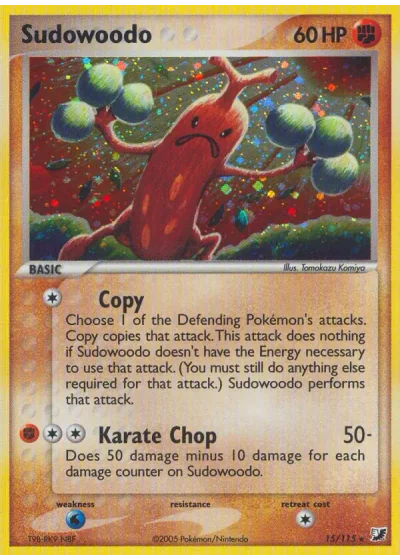 Choose 1 of the Defending Pokémon's attacks. Copy copies that attack. This attack does nothing if Sudowoodo doesn't have the Energy necessary to use that attack. (You must still do anything else required for that attack.) Sudowoodo performs that attack.