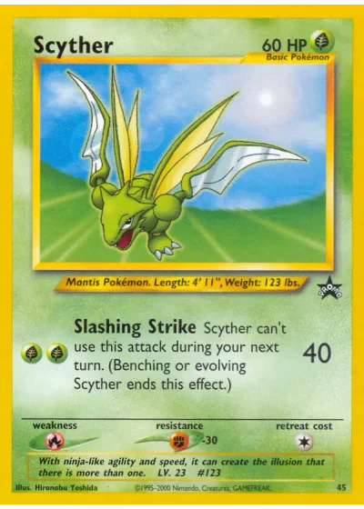 This attack can't be used during your next turn. (Benching Scyther ends this effect.)