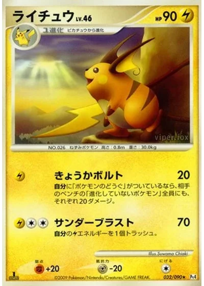 If Raichu has a Pokémon Tool card attached to it, this attack does 20 damage to each of your opponent's Benched Pokémon that isn't an Evolved Pokémon. (Don't apply Weakness and Resistance for Benched Pokémon.)