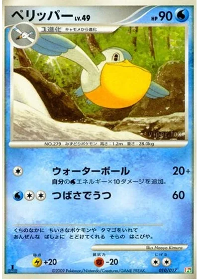 Does 20 damage plus 10 more damage for each Water Energy attached to Pelipper.