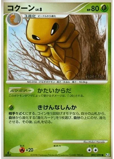 The Defending Pokémon is now Poisoned. Flip a coin. If heads, search your deck for an Evolution card that evolves from Kakuna and put it onto Kakuna. (This counts as evolving Kakuna.) Shuffle your deck afterward.