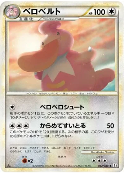 Choose 1 of your opponent's Pokémon. This attack does 10 damage to that Pokémon for each Energy attached to Lickilicky. (Don't apply Weakness and Resistance for Benched Pokémon.)