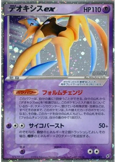 You may discard 2 Energy attached to Deoxys ex. If you do, this attack does 50 damage plus 20 more damage for each Energy attached to the Defending Pokémon.