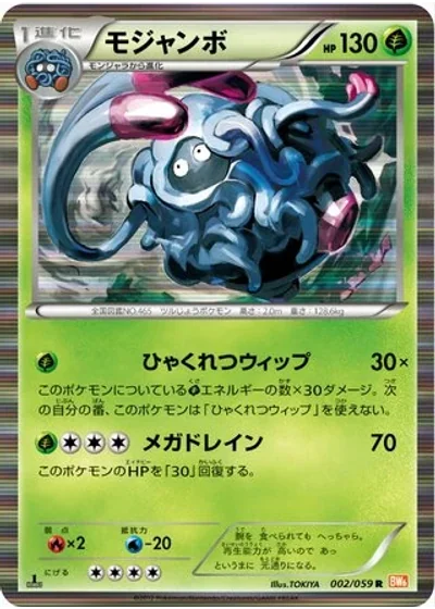Does 30 damage times the amount of Grass Energy attached to this Pokémon. This Pokémon can't use Hundred Furious Lashes during your next turn.