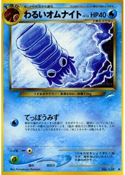 Choose 1 of your opponent's Pokémon. This attack does 10 damage for each Water Energy card attached to Dark Omanyte. Don't apply Weakness and Resistance. You can't do more than 30 damage in this way.