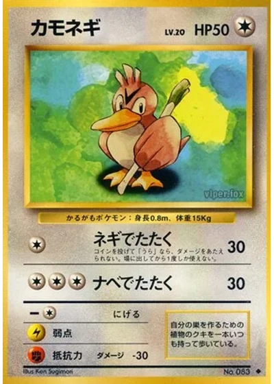 Flip a coin. If tails, this attack does nothing. Either way, you can't use this attack again as long as Farfetch'd stays in play (even putting Farfetch'd on the Bench won't let you use it again).