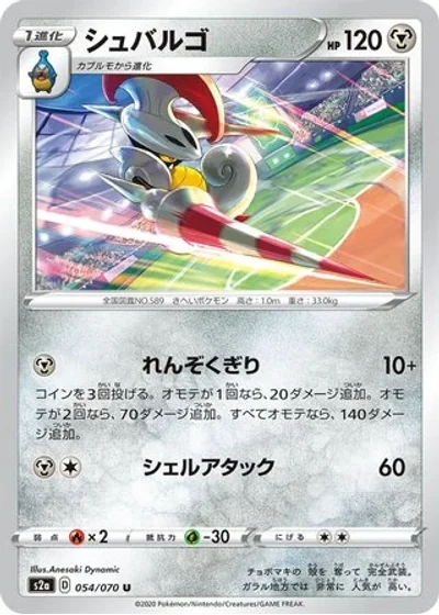 Flip 3 coins. If 1 of them is heads, this attack does 20 more damage. If 2 of them are heads, this attack does 70 more damage. If all of them are heads, this attack does 140 more damage.
