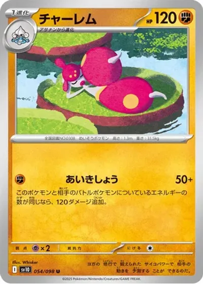 If this Pokémon and your opponent's Active Pokémon have the same amount of Energy attached, this attack does 120 more damage.