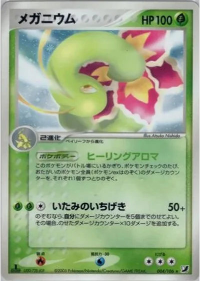 You may put up to 5 damage counters on Meganium. If you do, this attack does 50 damage plus 10 more damage for each damage counter you put on Meganium in this way.