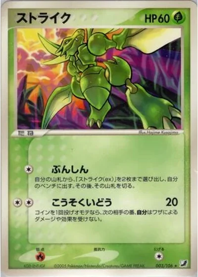 Search your deck for up to 2 in any combination of Scyther and Scyther ex and put them onto your Bench. Shuffle your deck afterward.
