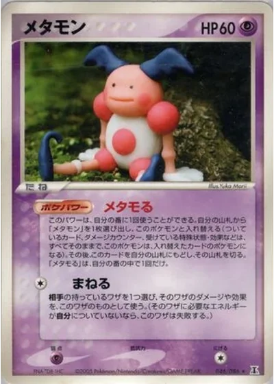 Choose 1 of the Defending Pokémon's attacks. Copy copies that attack. This attack does nothing if Ditto doesn't have the Energy necessary to use that attack. (You must still do anything else required for that attack.) Ditto performs that attack.