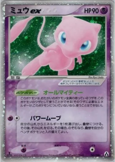 Search your deck for an Energy card and attach it to Mew ex. Shuffle your deck afterward. Then, you may switch Mew ex with 1 of your Benched Pokémon.