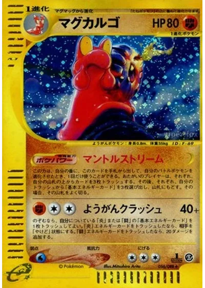 You may discard a Fire or Fighting basic Energy card attached to Magcargo. If you discard a Fire Energy card in this way, the Defending Pokémon is now Burned. If you discard a Fighting Energy card in this way, this attack does 40 damage plus 20 more damage.