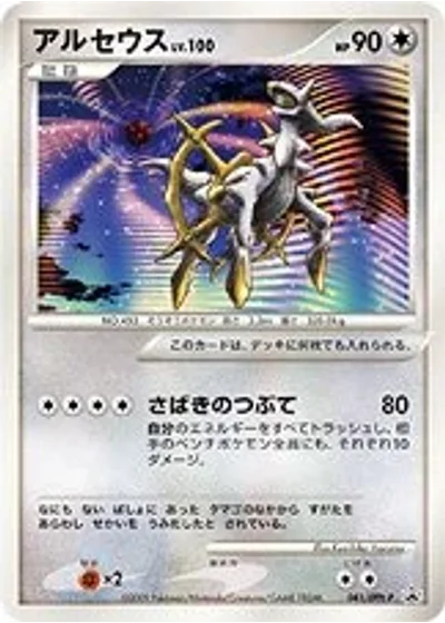 Discard all Energy cards attached to Arceus and this attack does 10 damage to each of your opponent's Benched Pokémon. (Don't apply Weakness and Resistance for Benched Pokémon.)