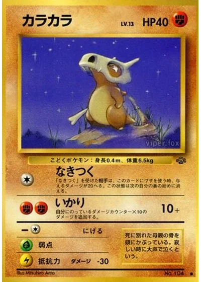 If the Defending Pokémon attacks Cubone during your opponent's next turn, any damage done by the attack is reduced by 20 (after applying Weakness and Resistance). (Benching either Pokémon ends this effect.)