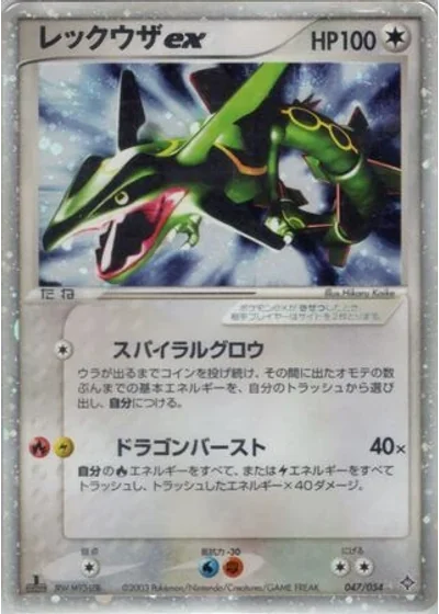 Flip a coin until you get tails. For each heads, search your discard pile for a basic Energy card and attach it to Rayquaza ex.