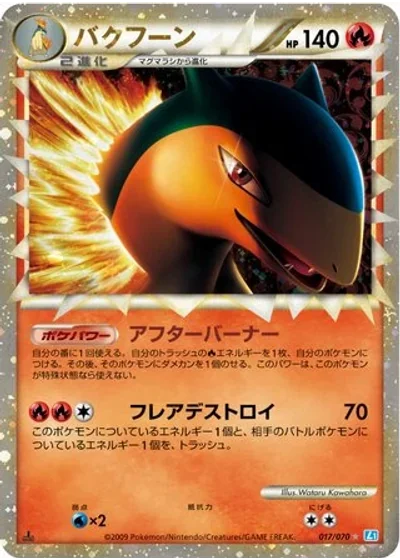 Discard an Energy card attached to Typhlosion and discard an Energy card attached to the Defending Pokémon.