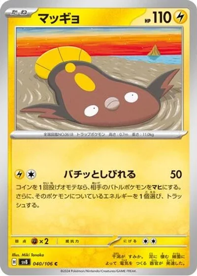 Flip a coin. If heads, your opponent's Active Pokémon is now Paralyzed, and discard an Energy from that Pokémon.