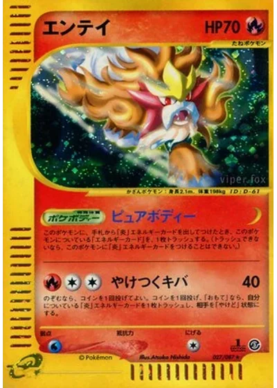 You may flip a coin. If heads, discard a Fire Energy card attached to Entei and the Defending Pokémon is now Burned.